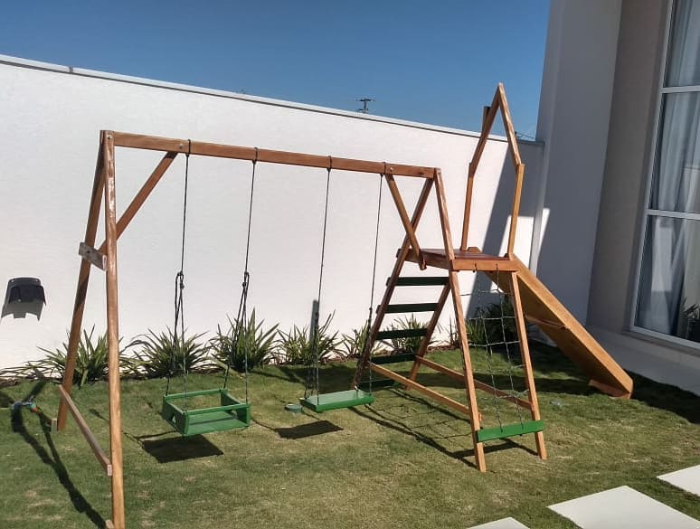 Utilizamos madeira de alta qualidade, tratada para resistir a condições climáticas adversas e ao desgaste. A madeira é frequentemente tratada com produtos não tóxicos para garantir a segurança das crianças.